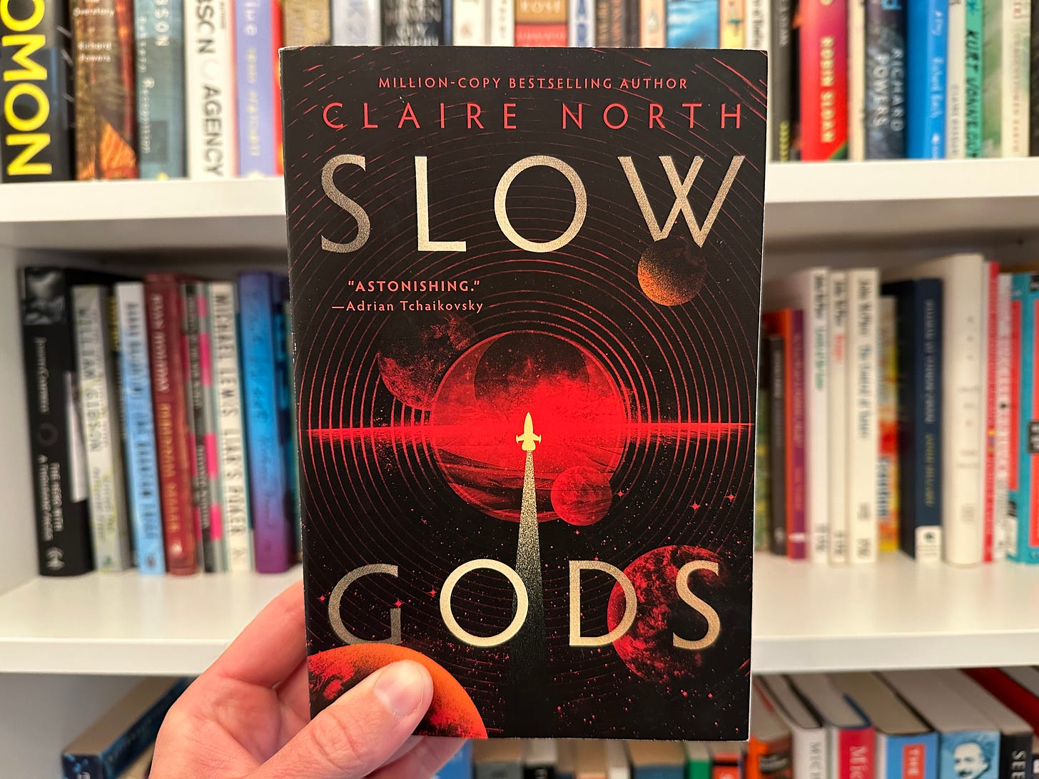 Slow Gods by Claire North is the best science-fiction novel I’ve read in a good while. Buzzing with strange and beautiful ideas, the story moves between scales with uncommon fluency, zooming in on intimate moments charged with personal meaning and spiraling out to show how the consequences of the choices made in those moments ripple out through time, space, and history. Stars collide. Cultures clash. Planets die. New worlds, new friendships, and new gods, are born. This is an adventure worth embarking on.